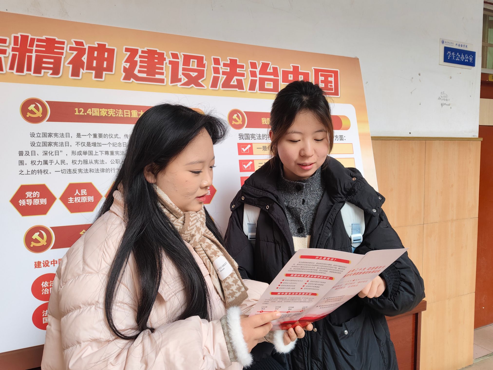 “同学,请问如果遇到网络诈骗,我们应该如何用法律保护自己?”在互动咨询台前,气氛尤为热烈。面对同学们的踊跃提问,志愿者们耐心倾听,细致解答,在一问一答的生动交流中,不仅普及了法律常识,更传递了“办事依法、遇事找法、解决问题用法、化解矛盾靠法”的法治理念。许多同学表示,这次活动让他们真切地感受到,宪法并非高高在上的法典,而是守护我们日常生活的坚实屏障。