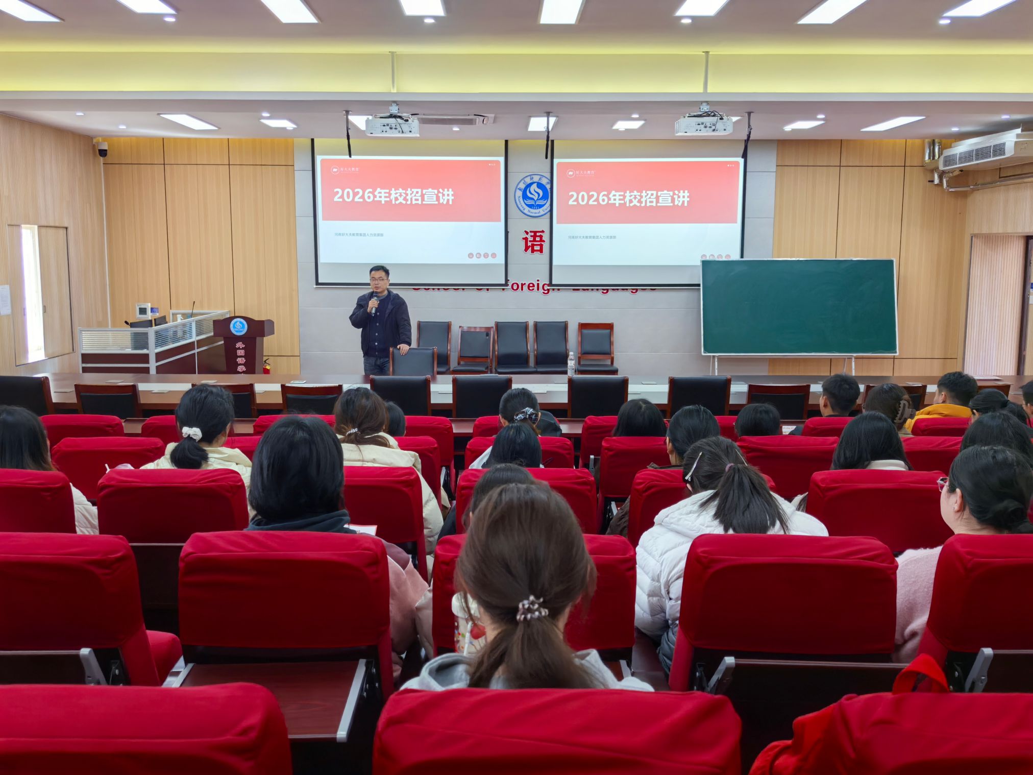 本网讯(通讯员 郭一丹/图文)为拓宽毕业生就业渠道,搭建优质校企合作平台,助力学子高质量充分就业,2026年3月21日下午,河南好大夫教育集团应邀莅临我院,在115会议室举办校园专场招聘宣讲会。本次招聘主要面向我院英语专业相关毕业生,拟招聘英语教师岗位若干名。