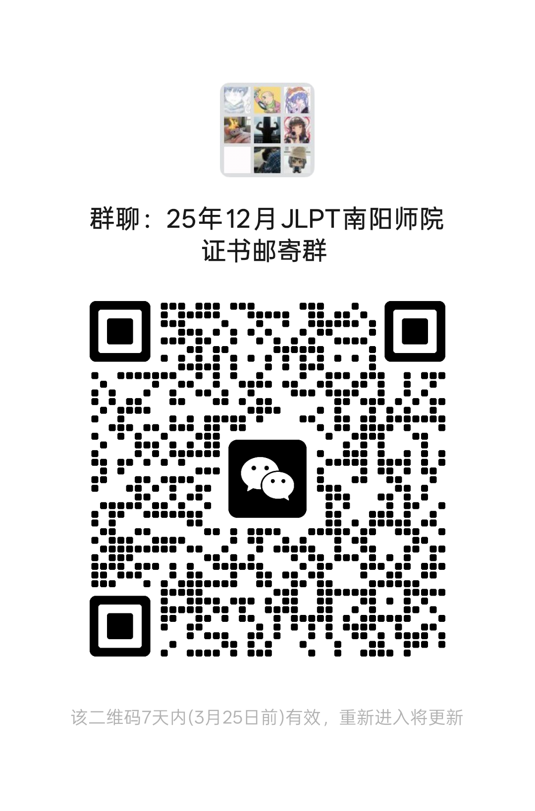 六、本次需领取证书同学可以进下边微信群(二维码见下图),证书领取结束后会解散。邮寄信息填写的问卷星二维码也见下图(https://www.wjx.top/vm/hgnRfxd.aspx#)。本通知将在学院网站(http://www2.nynu.edu.cn/yuanxi/wyxy/)和微信群同时下发。考点负责对考生的日本语能力测试证书和成绩单保管2年,请考生及时到现场领取或办理邮寄。
