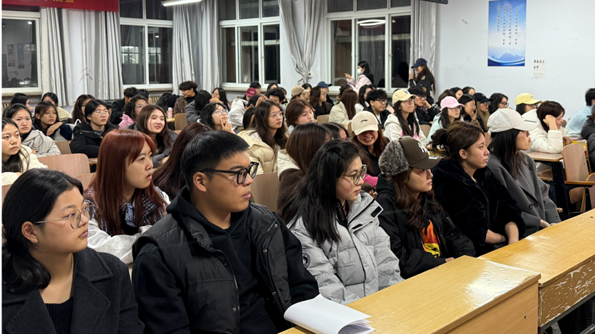 本网讯(叶权磊/文 胡欣妍/图)为增强学生法律素养,提升安全防范能力,11月16日晚,新闻与传播学院在博睿楼开展“增强法律意识,筑牢安全屏障”主题班会,本次班会由辅导员包金虎主持,2025级全体学生参与。