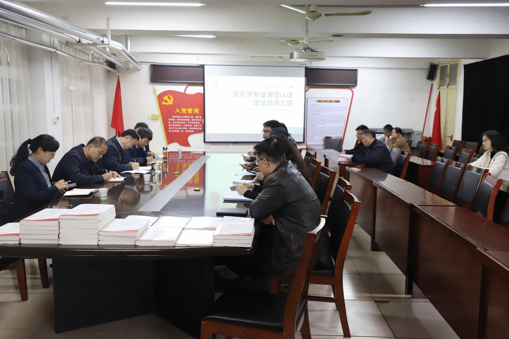 我院院长季伟从培养方案修订、课程体系优化、师资队伍建设等方面就音乐学(师范)专业认证筹备进展情况作详细汇报。罗永松校长一行听取汇报、查阅资料,并实地查看了教学档案室。罗校长对我院前期准备工作给予肯定,他强调,专业认证是推动师范教育高质量发展的重要抓手,要严格对照认证标准,进一步夯实办学基础,突出师范特色,强化实践环节,切实提升人才培养质量。刘金江副校长强调学院要以认证为契机,全面梳理短板弱项,细化工作举措。教务处、教学质量监控与评估中心负责同志对认证细节提出具体要求。