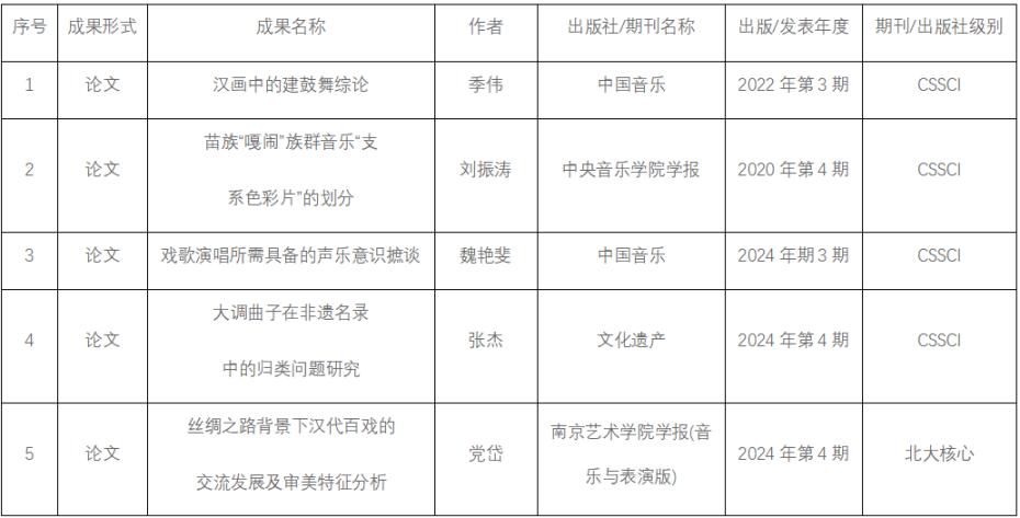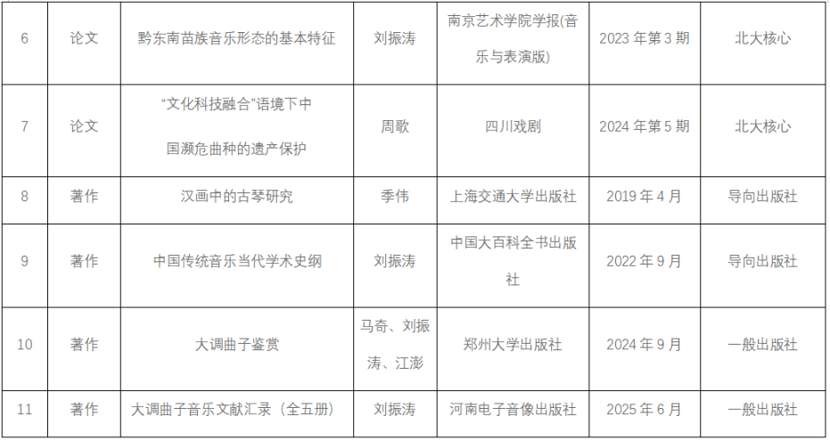 音乐学科代表性学术专著与学术论文